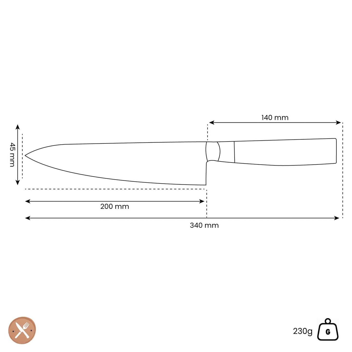 Le couteau de chef japonais Zen de 20 cm a été spécialement développé pour répondre à la demande croissante de couteaux japonais de haute qualité. Le damassé à 37 couches possède un noyau en acier inoxydable VG10 d'une dureté de HRC 61 pour un tranchant durable.
