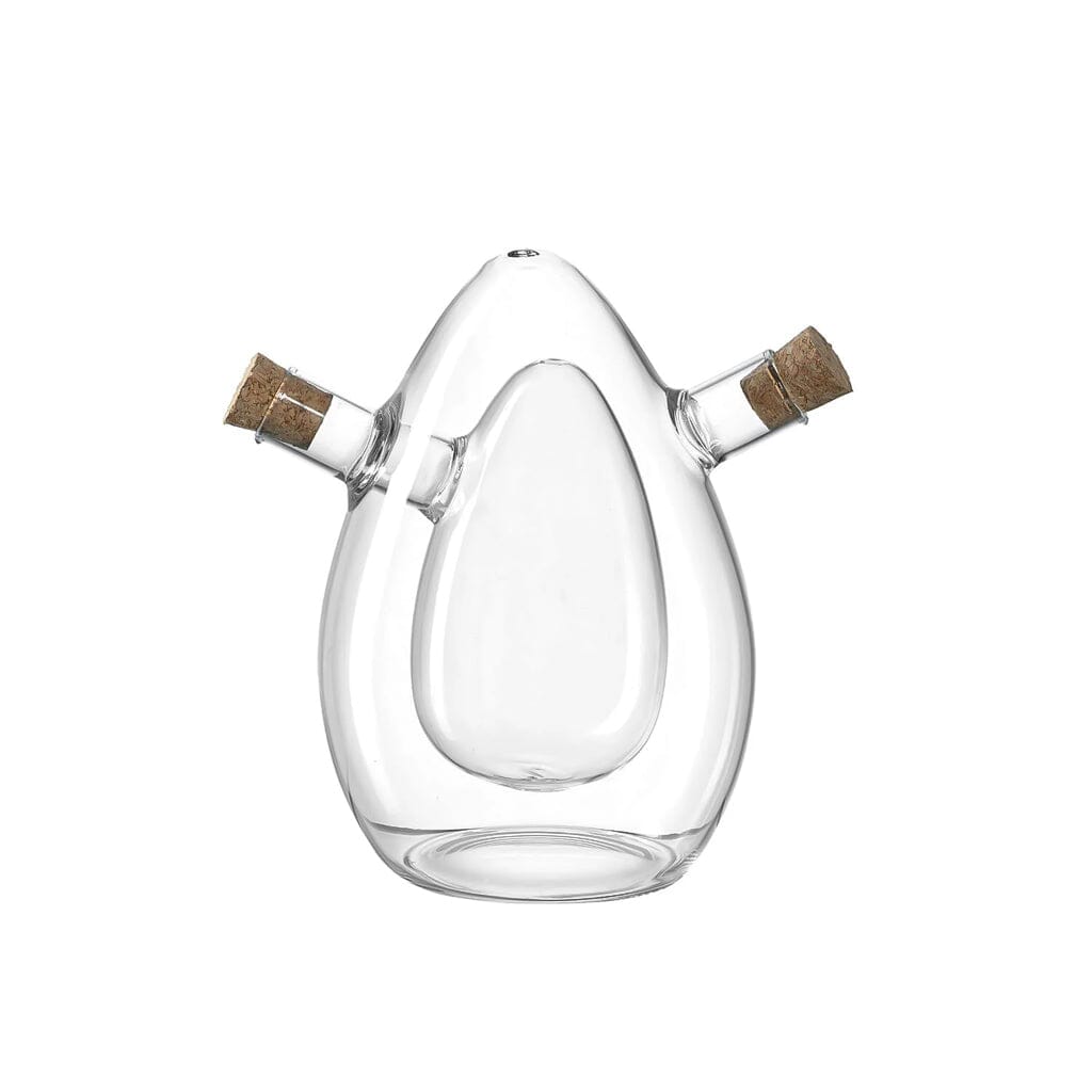 Ce design ovale astucieux 2 en 1 permet de contenir huile et vinaigre dans une seule bouteille, chacune dotée de son propre bec verseur aromatique et hermétique, ainsi que de son bouchon en liège. Cela vous permet de doser avec précision et élégance. Chaque bouteille étant fabriquée à la main, vous recevrez une pièce unique : aucune n'est identique.