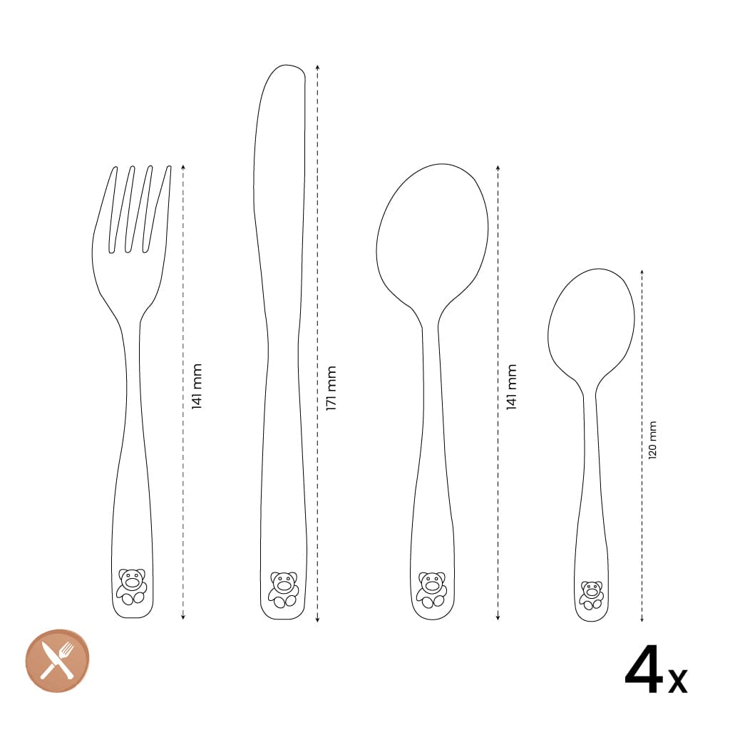 Cette édition du Teddy a été finie avec une grande précision. Et se caractérise par les ours gravés sur les poignées. Le set de couverts présente également de beaux bords arrondis.