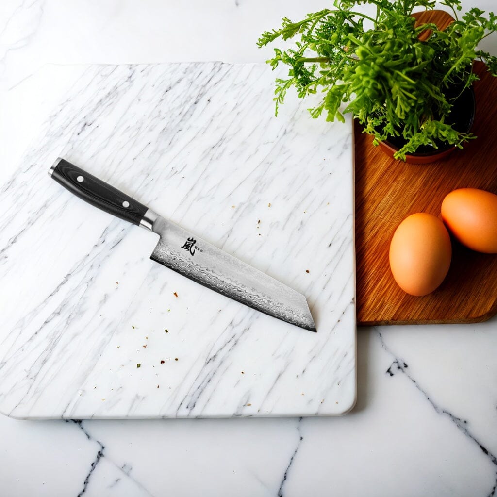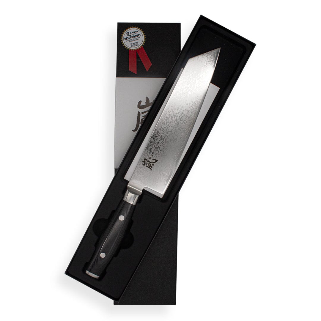 Le Kiritsuke japonais 20 cm de la marque Yaxell se distingue par la lame damassé 69 couches avec noyau en acier trempé VG-10, qui garantit des performances de coupe durables.