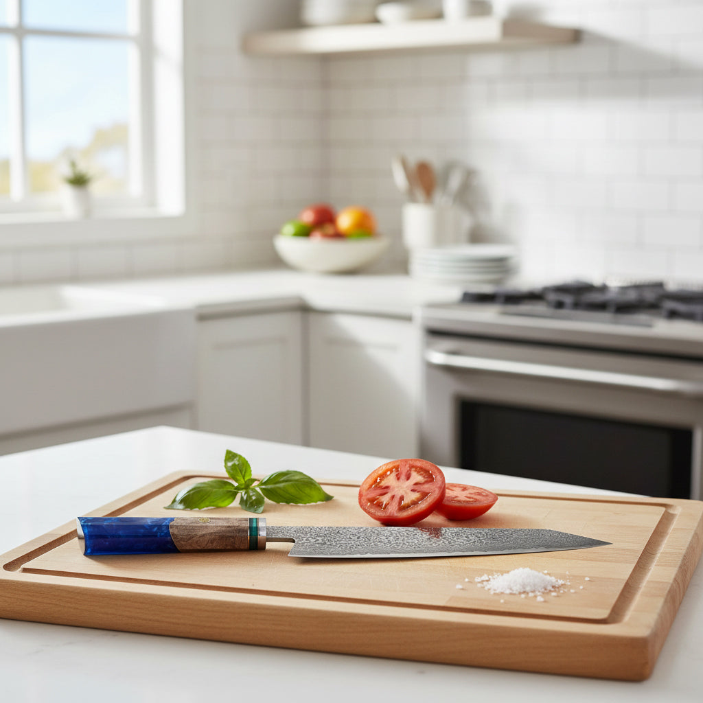 Shinrai Knives - Sapphire Octagon Damascus Kiritsuke 23 cm - Special Edition