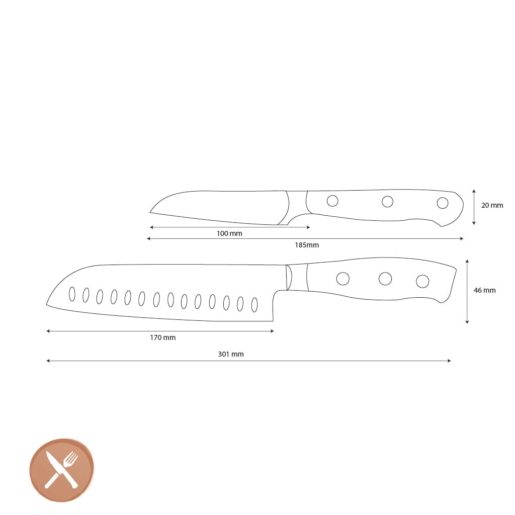 • Contents set: Office knife (10 cm) Santoku knife (17 cm)